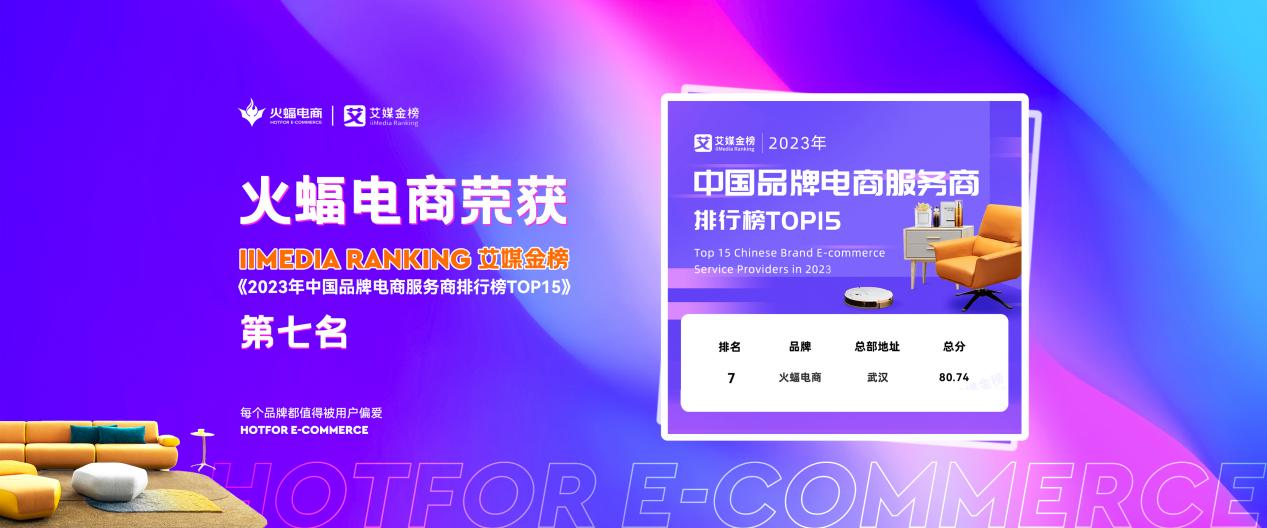 日前,iiMedia Ranking艾媒金榜發布了《2023年中國品牌電商服務商排行榜TOP15》,榜單幾乎囊括了國內品牌電商服務商頭部品牌,成為行業極具權威性的參考之一。其中,武漢火蝠電子商務有限公司(以下簡稱“火蝠電商”)憑借著深耕品牌電商服務行業近九年的數字化綜合服務能力,榮登艾媒金榜第7名。