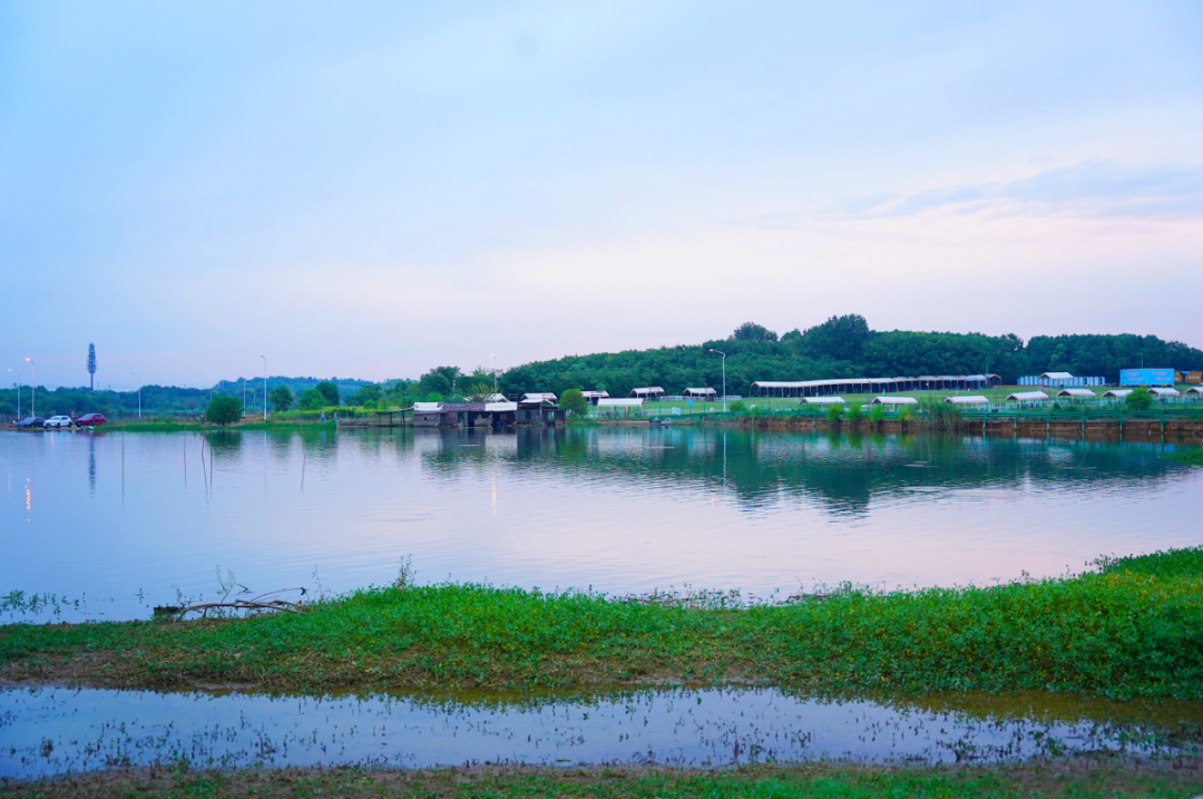 “采菊東籬下,悠然見南山”,湖水、微山、果園、樹木、草、風、花、夕陽、飛鳥、鳴蟲、竹籬、小木屋.……還有當日偶遇的像棉花糖一樣飄蕩的云朵和靜謐的藍天,仿佛就是陶淵明筆下的夢想境地